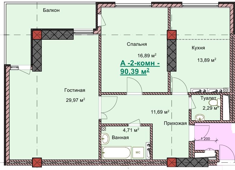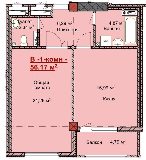 1-2-3-х комнатные квартиры общей площадью от 56,17м2 до 116,6м2