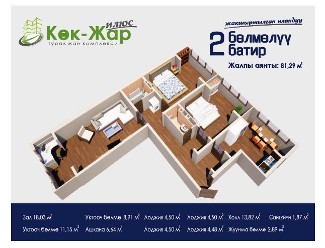 Жилой комплекс «КӨК-ЖАР ПЛЮС » расположен в экологически чистом микрорайоне, вдали от шумного города. Уникальность данного проекта заключается в хорошем местоположении, развитой инфраструктуры и отличной транспортной доступности.