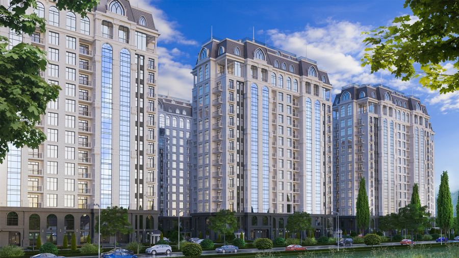 Помимо престижного местоположения, высокий статус проекта подчеркивают величественная авторская архитектура, эксклюзивная отделка фасадов натуральны канем травертином, эффектные входные группы, насыщенная инфраструктура, разнообразие архитектурных решений, ландшафтный дизайн и собственный пешеходный бульвар.